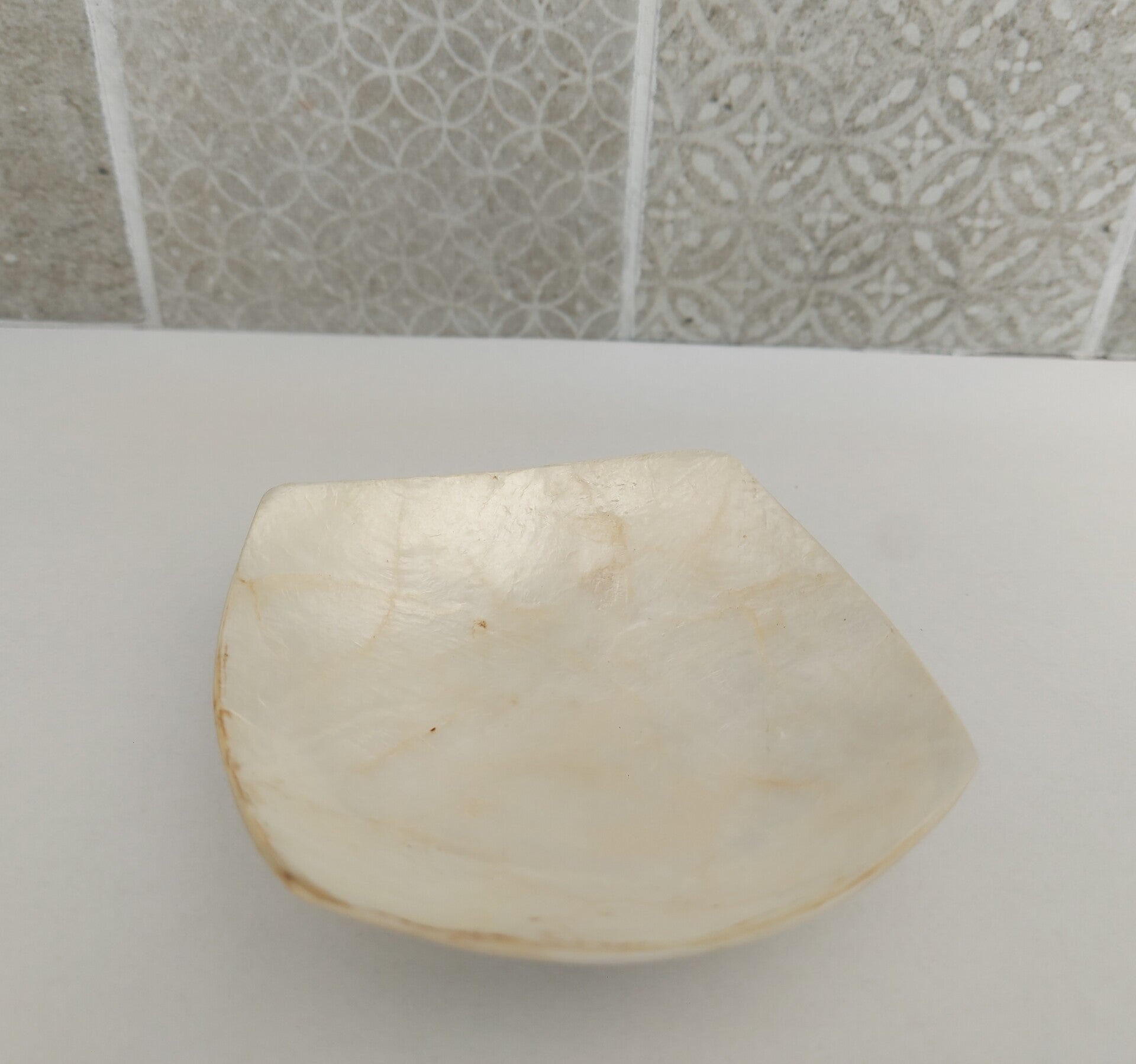 - schelpen schaaltje klein (vorm maar keuze). Omdat het handwerk is, zijn de schaaltjes niet precies hetzelfde en zijn er verschillen in vorm en motief.